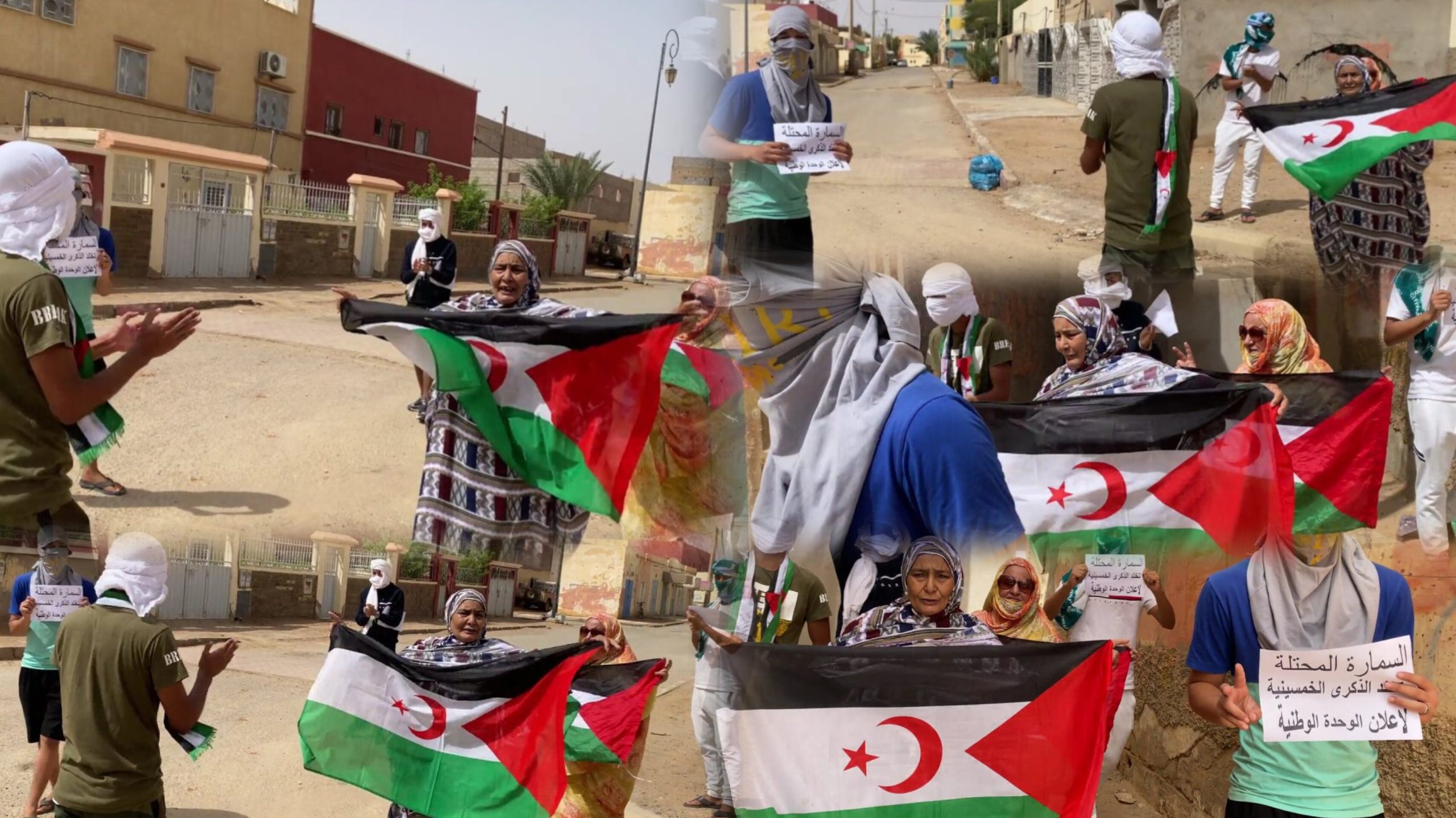 خرج عدد من المناضلات والمناضلين الصحراويين بمدينة السمارة المحتلة اليوم الجمعة، في مظاهرة سلمية بحي السكن احتفاء بالذكرى الخمسين للوحدة الوطنية حسب ما افاد به مراسل ” للميدان sh. بالأرض المحتلة :.